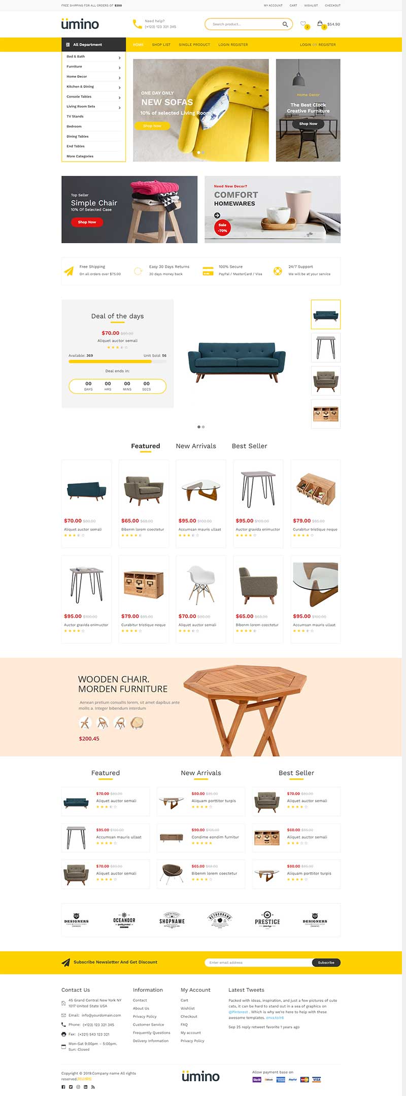 这是一款响应式家具商城HTML模板,它可以适应不同的屏幕尺寸,包括电脑、平板和手机等设备。该模板黄色设计美观大气,带有购物车等页面,色彩搭配协调,商品列表中带有快速预览功能,优化了用户的体验效果。让用户在浏览家具时感受到舒适和美感。商城页面布局合理,分类清晰,方便用户快速找到自己需要的商品。总之,这是一款功能齐全、美观大方的家具商城HTML模板,适合各类家具商家使用。