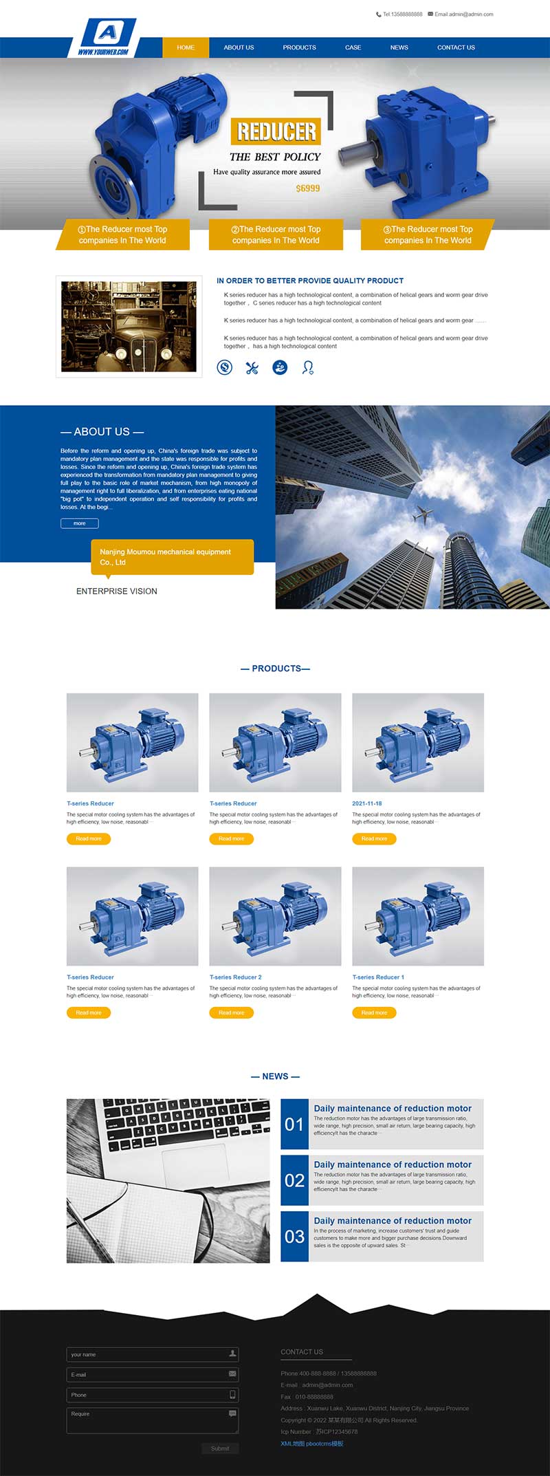英文减速机械设备网站模板下载(自适应手机端)。该模板采用pbootcms开源内核,可商用无版权问题。