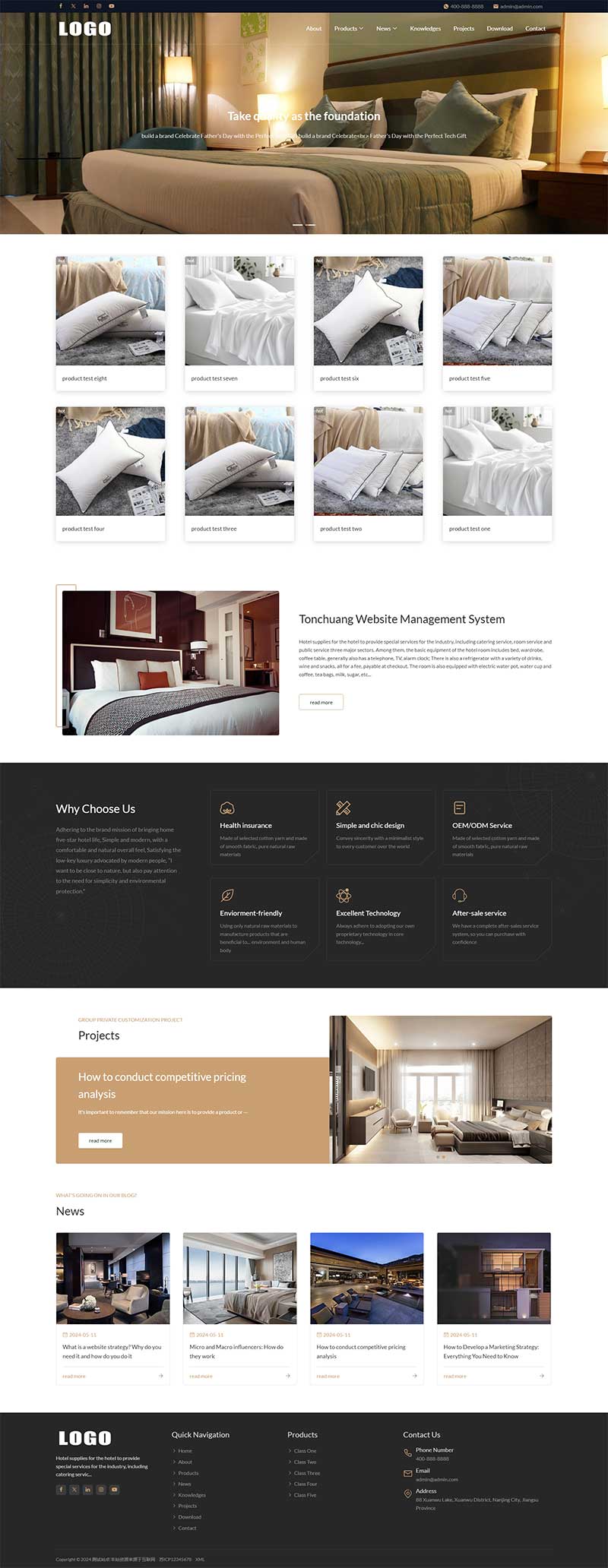 英文酒店床上用品pbootcms网站模板