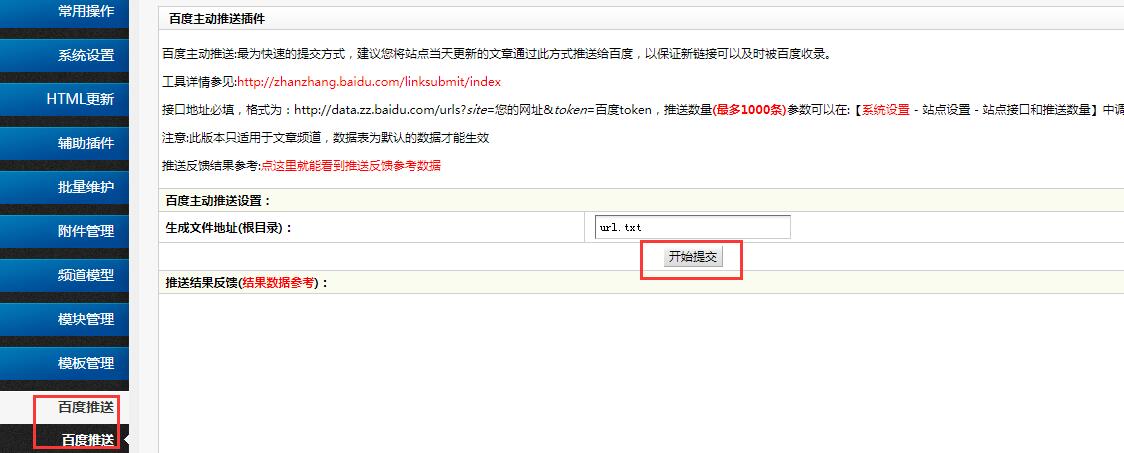- 请根据实际情况自行填写系统基本参数中的推送数量。本插件的限制为1000条。建议每次提交的数量不宜过多。