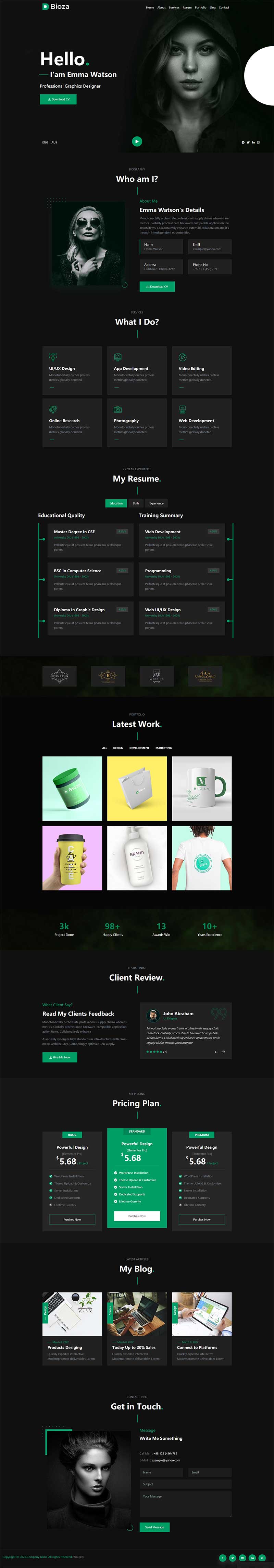 这是一套黑色图形设计师个人简历HTML模板,同样适用于前端设计师个人简历网页模板,是专门展示个人简历的HTML模板。以黑色为主色调,给人一种专业、时尚的感觉。该模板提供了简洁、清晰的页面布局,包括个人介绍、作品展示、技能专长、教育经历等。通过使用这个模板,图形设计师可以快速创建一个独特而有吸引力的个人简历网站,展示自己的设计作品和专业能力,吸引更多的雇主和机会。 内容加载中..