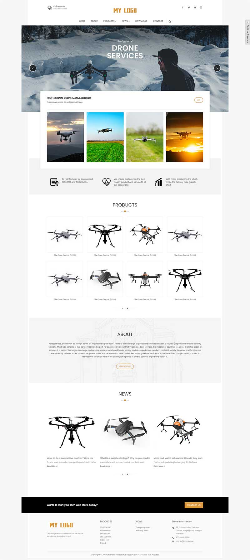 自适应手机端无人机英文外贸企业PbootCMS网站模板