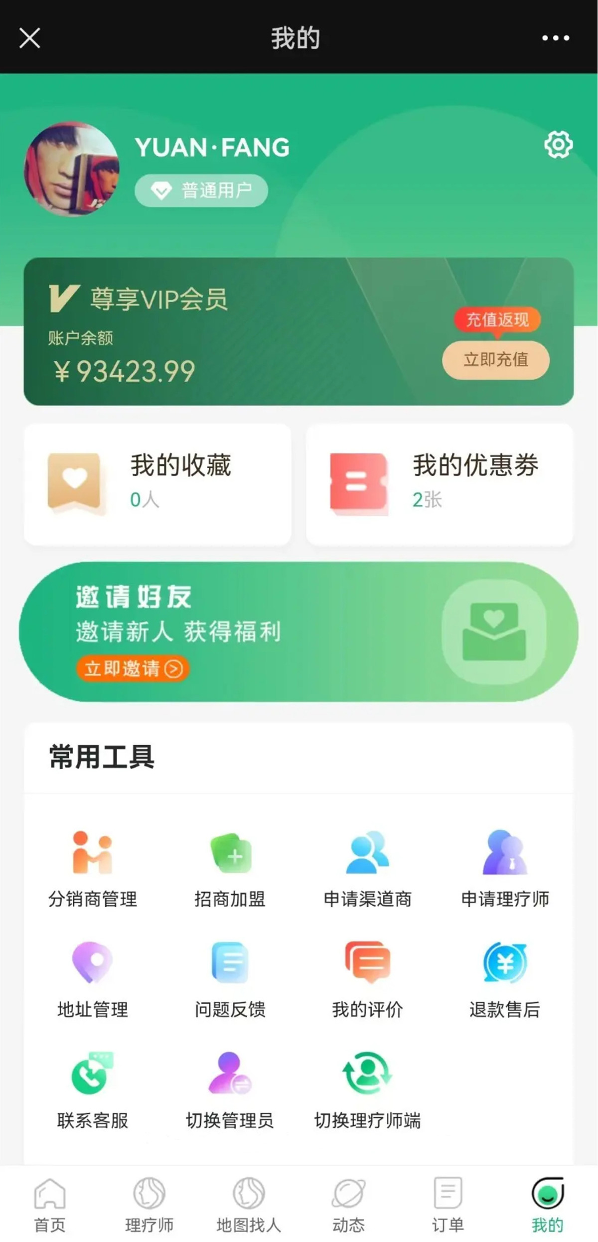 - 分销合伙人:可以邀请用户和技师,赚取佣金。