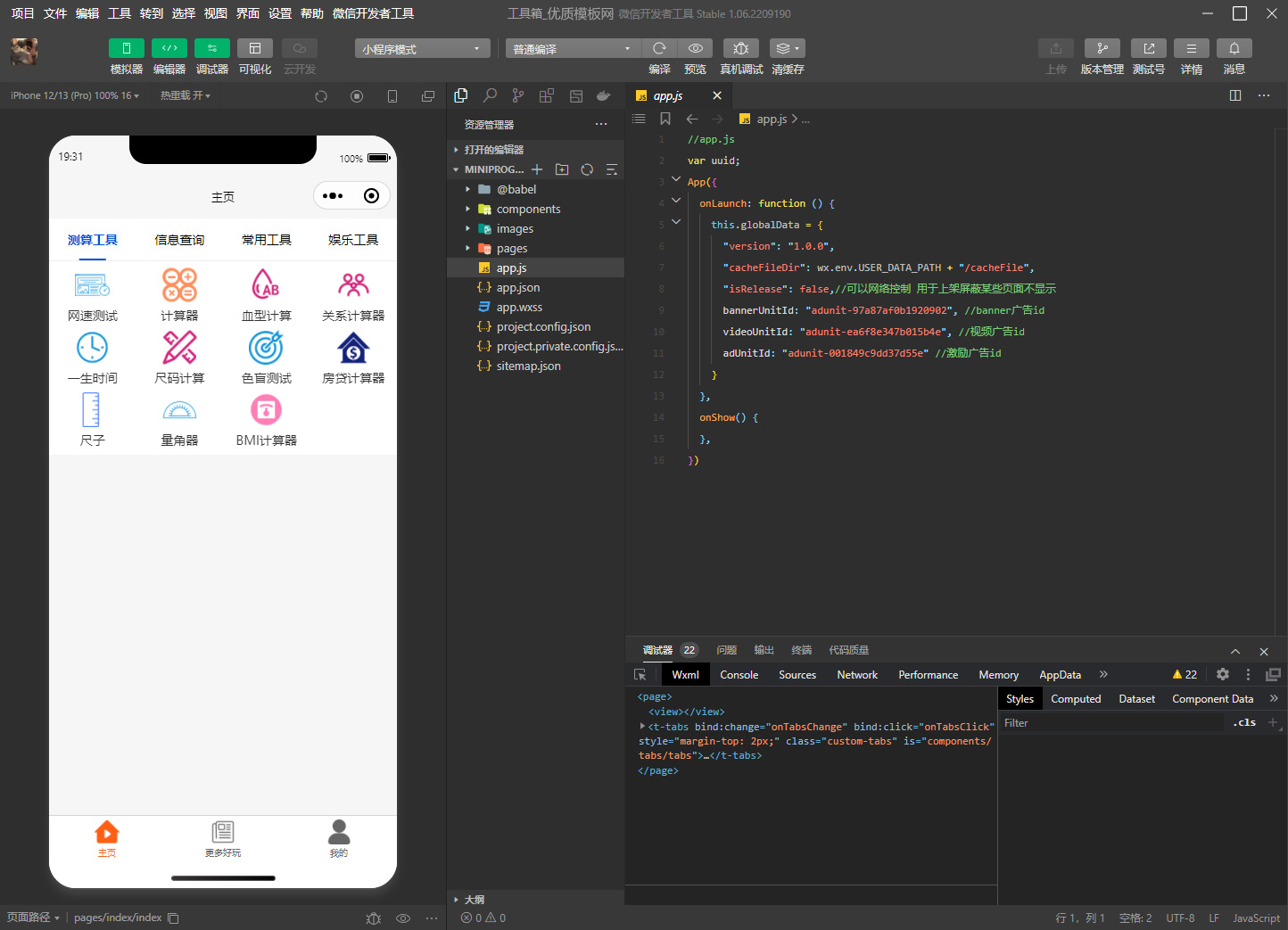 该小程序源码提供了多种实用的工具,包括测算工具、信息查询、常用工具和娱乐工具等。
